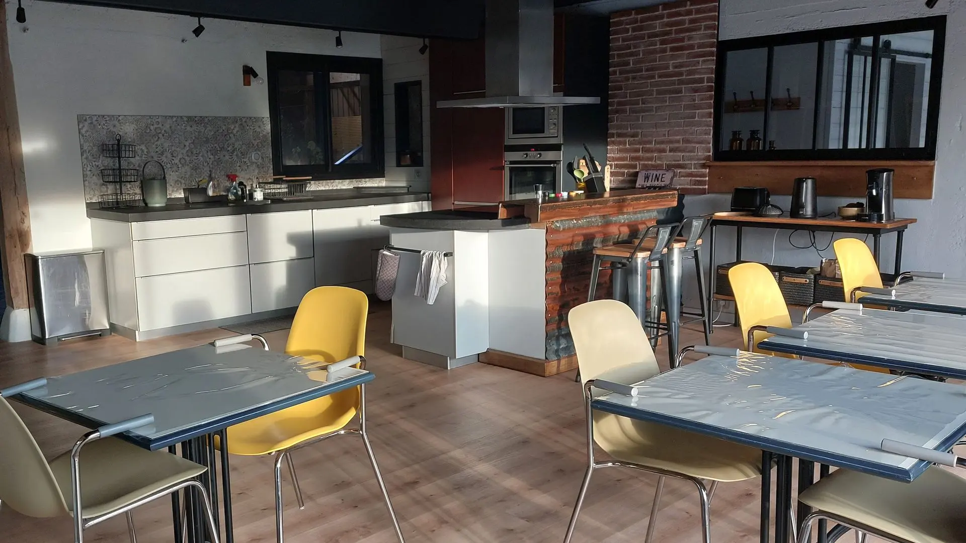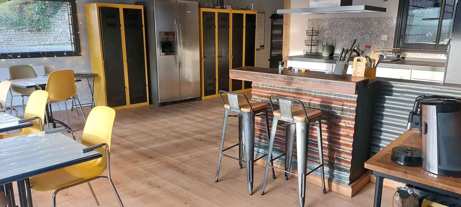 Le coeur de la vie en communauté avec une vaste cuisine équipée, la salle à manger et la buanderie.