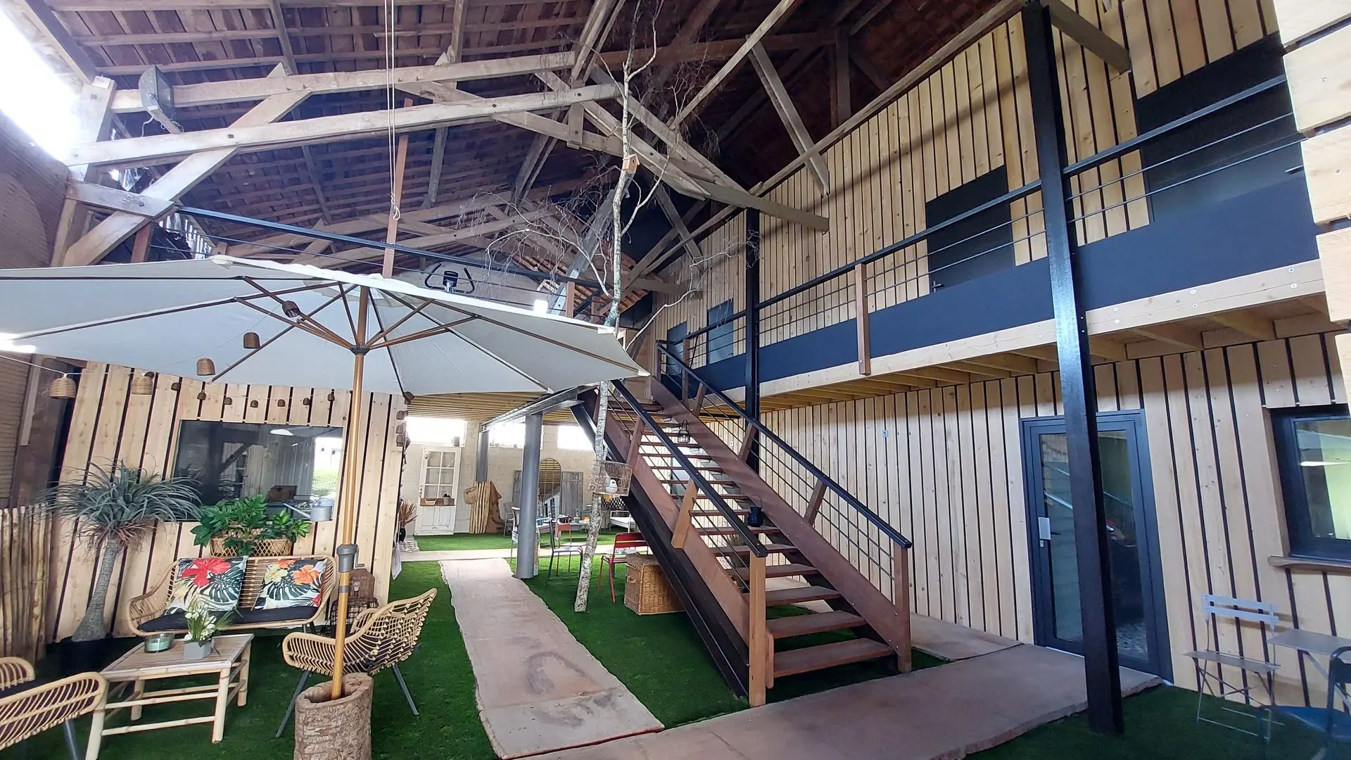 Une mezzanine couverte, lieu d'activité physique, de développement personnel et artistique et de bricolage.