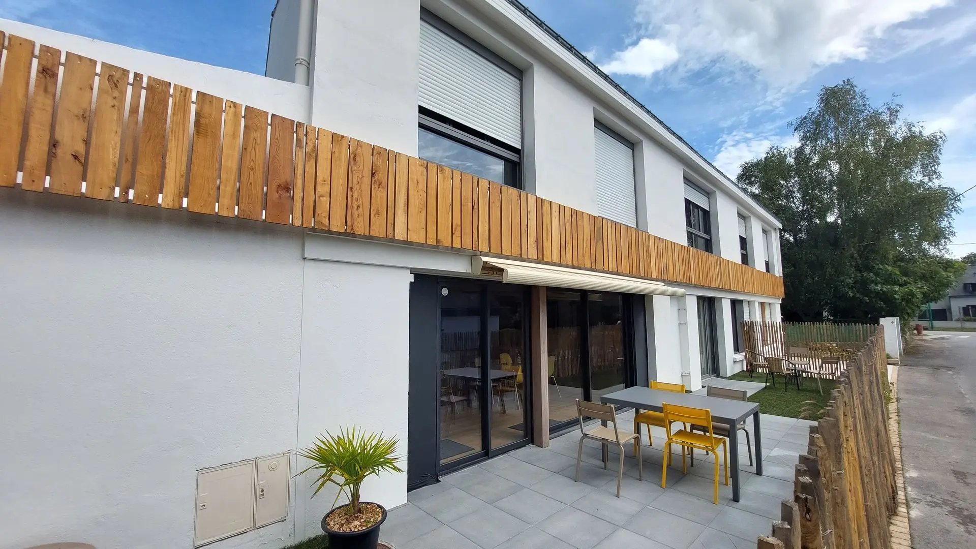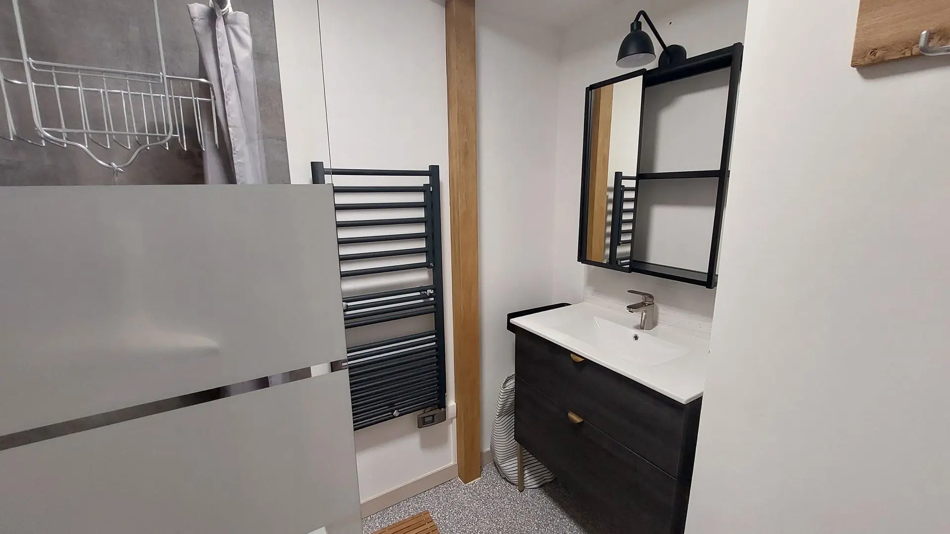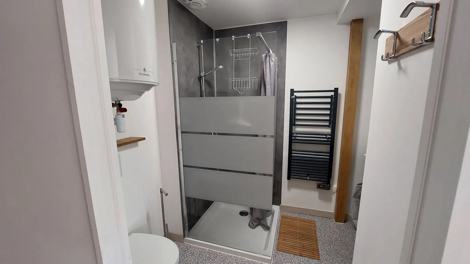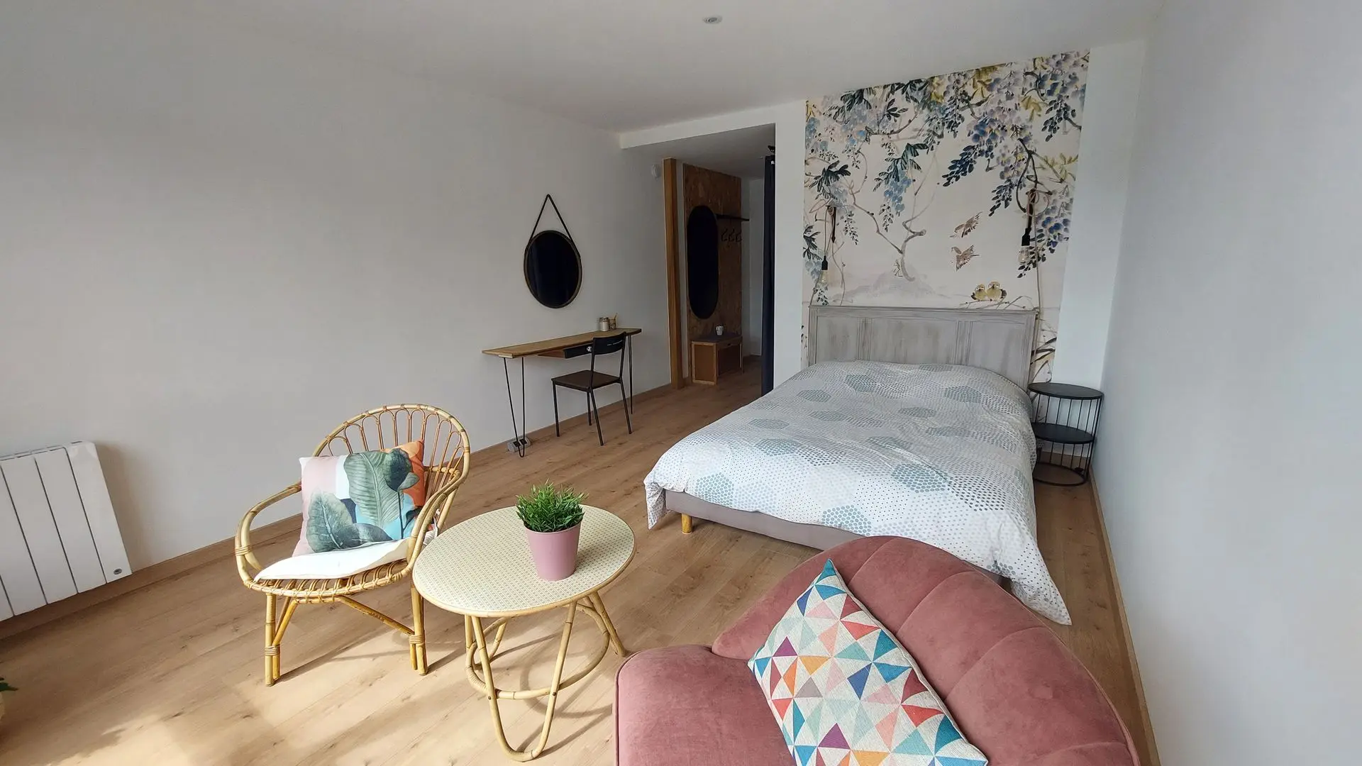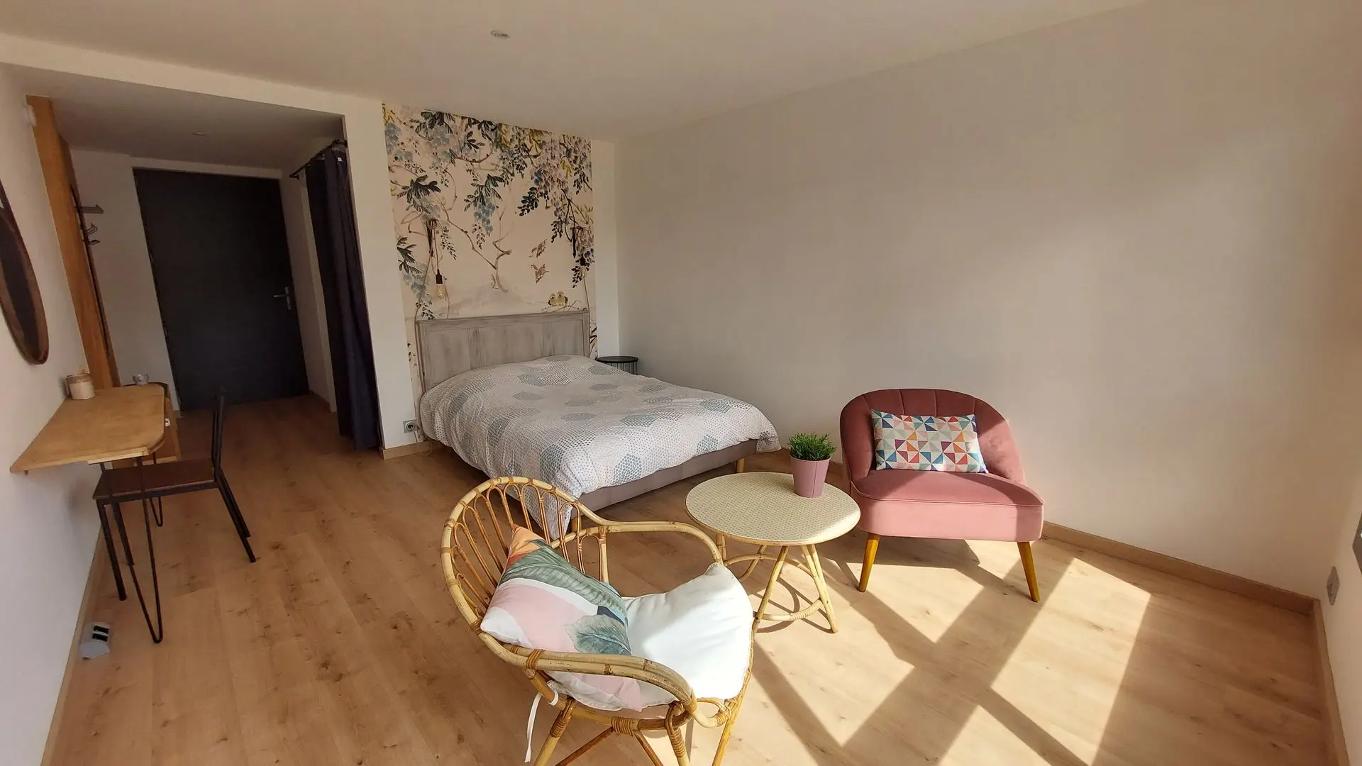 Votre appartement indivdiuel de 24m², espace couchage avec lit double, espace avec console et chaise, espace cocooning, salle de douche et wc.